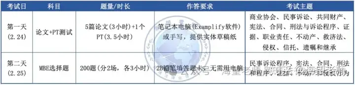 笔试部分(论文与PT)中,考生将获得纸质考试材料与实体草稿纸;答题内容需录入 ExamSoft 的 Examplify 软件。仅笔试部分需考生自备笔记本电脑,考试期间无需联网。考前,考生将收到 Examplify 软件的下载指引及模拟考试的相关说明。考生也可选择手写答题,手写答题者无需携带笔记本电脑。