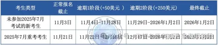 - 逾期费:分 50 美元、250 美元两档,前文时间节点已明确,早报名可全免;