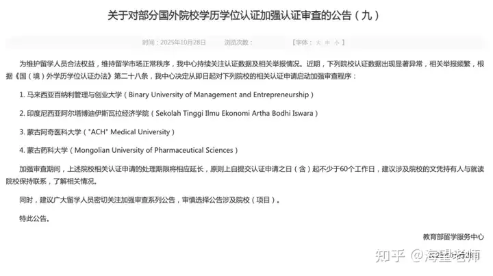 重磅!中留服移除270所海外院校认证,美国占63所,多所法学院在列!-行业资讯-海望老师