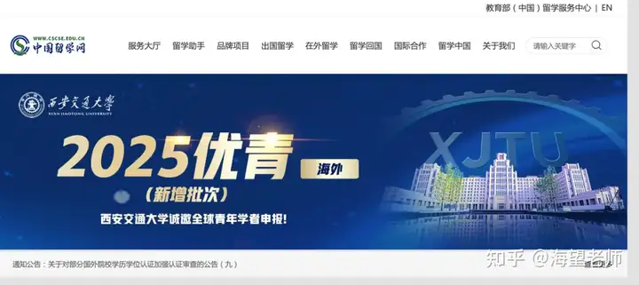 第一步:通过浏览器搜索 “教育部留学服务中心”,打开官方网站;