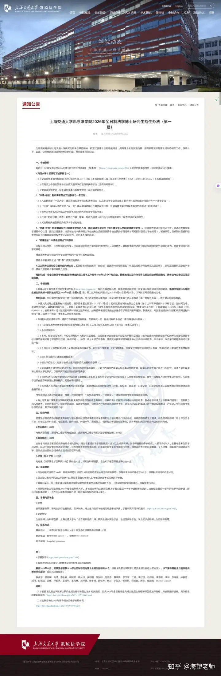 上海交通大学凯原法学院2026年全日制法学博士研究生招生-行业资讯-海望老师