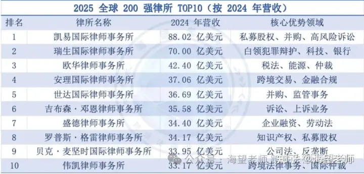 全球总营收排名前十的律所,你认识几个?-行业资讯-海望老师