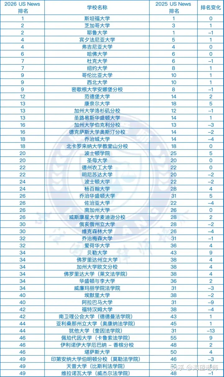 美国法学院排名还能信吗?2026年美国顶级法学院排名来了! 海望老师-行业资讯-海望老师