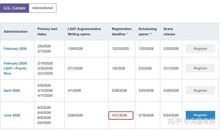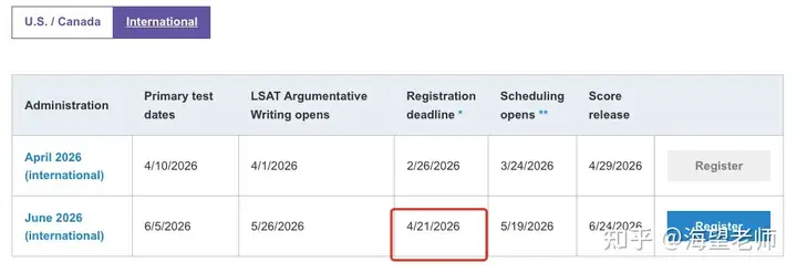 今天是2026年4月21日,2026年6月LSAT考试的报名通道将在今晚美东时间11点59分正式关闭。