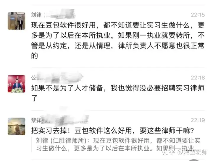 是啊,“现在AI软件这么好用,让实习生做什么呢?”,AI技术的发展对基础法律工作的替代效应是真实且剧烈的,合同审查、法律检索、文书草拟、案例比对——这些传统上由实习律师或初级律师耗费大量时间完成的任务,如今大语言模型可以在几秒钟内完成,质量甚至不低于中等水平的人类初稿。